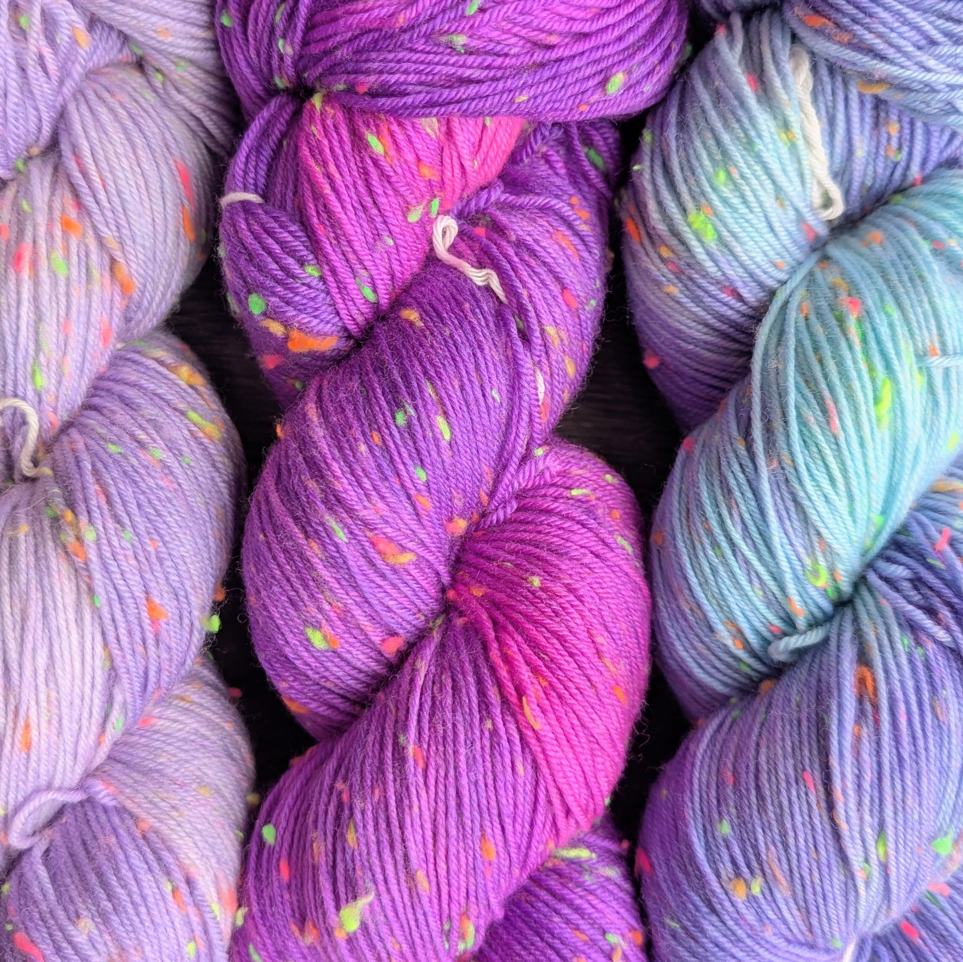 Neon Dreams is a vibrant and playful yarn base with a smooth feel and subtle texture. The superwash merino provides softness and elasticity, while the nylon adds strength, making it a great choice for socks, shawls, garments, and everyday accessories.