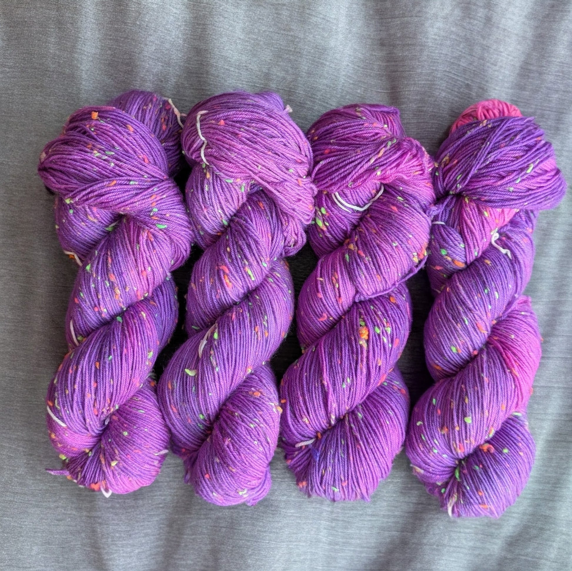 The added NEP creates small pops of color throughout the yarn, giving a lively, speckled effect that really comes to life once worked up. Each skein is hand dyed, resulting in natural variations that make every project unique.